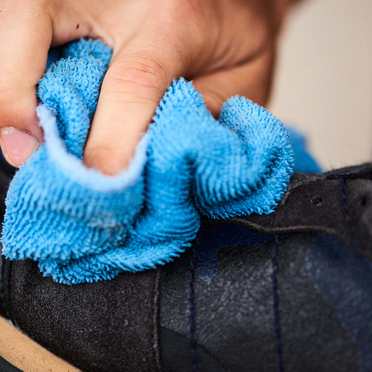 Fjern den verste smuss med en tørr klut, så det er ikke lenger skitt på skoene eller støvlene.